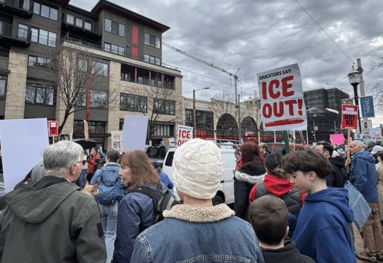 Seattle Educators Against Ice protest at Seattle Central College on January 31, 2026, of which SESEC was an endorser.